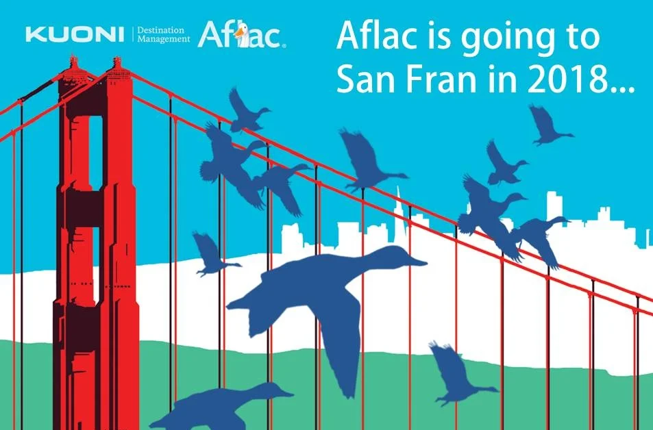 This blank template for a proposal to host the Aflac™ Annual Corporate Conference in San Francisco was conceptualized and created from scratch by Matthew Macri. The imagery is a combination of hand drawings and graphic design, edited and sized in Photoshop and formatted into a PowerPoint file to act as a user-friendly template.